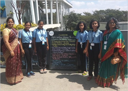 - Earthian Award – The school team of four girls from seventh and eighth standard received Wipro Earthian Award 2019. They worked on the theme Sustainability and waste. The project was selected from all over India projects.